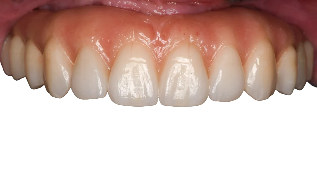 It is custom‑made in a certified dental laboratory to match the color, shape, and translucency of your natural teeth. The restoration is designed for proper force distribution and a precise fit with the surrounding gums.